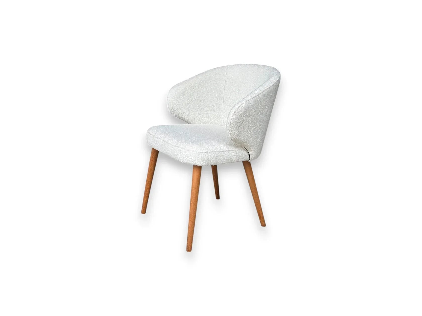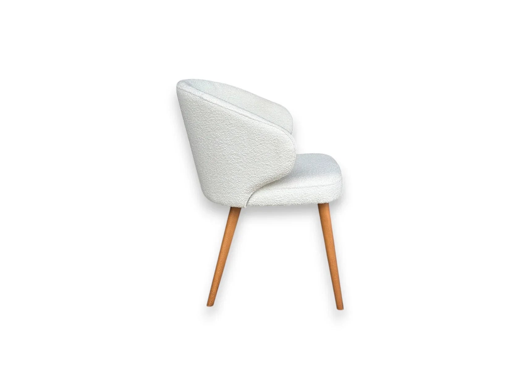 Elegant, confortabil și mereu actual – scaunul Caprice impresionează prin designul său rafinat și combinația perfectă între natural și modern. Structura solidă din lemn masiv oferă stabilitate și durabilitate, în timp ce tapițeria moale din stofă bouclé adaugă un plus de confort și un aspect sofisticat, potrivit oricărui decor contemporan.